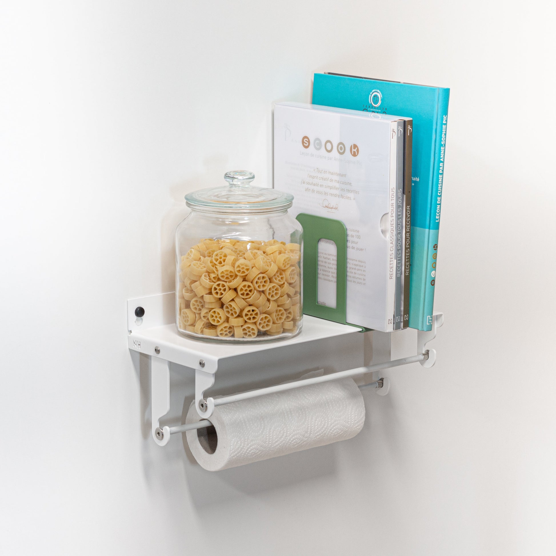Pour élargir la polyvalence des différentes étagères, on a conçu un système de double dérouleur à utiliser dans la cuisine ou salle de bain. Porte rouleau sopalin, papier alu, torchons, ils peuvent être rangés dans un minimum d’espace toujours avec la praticité d’une étagère. De même pour la salle de bain avec des serviettes, vêtements…